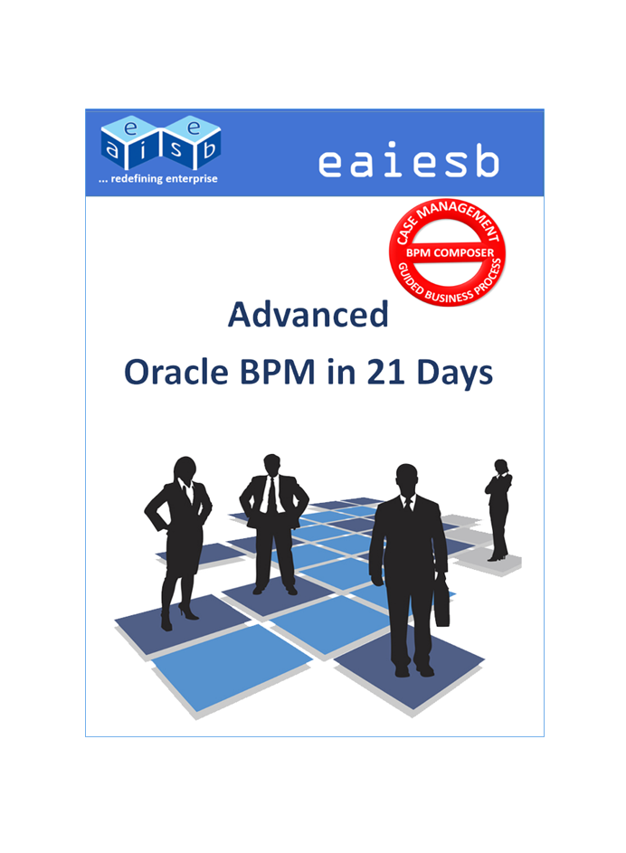 EAIESB "Advanced Oracle BPM in 21 Days" provides developers, with step by step instructions to learn and develop the BPM applications using the BPM composer. Includes topics like Business Rules, Human Interactions, Exception Handling, Events, Simulation, BAM, Flex Fields, Case Management and Process Analytics.